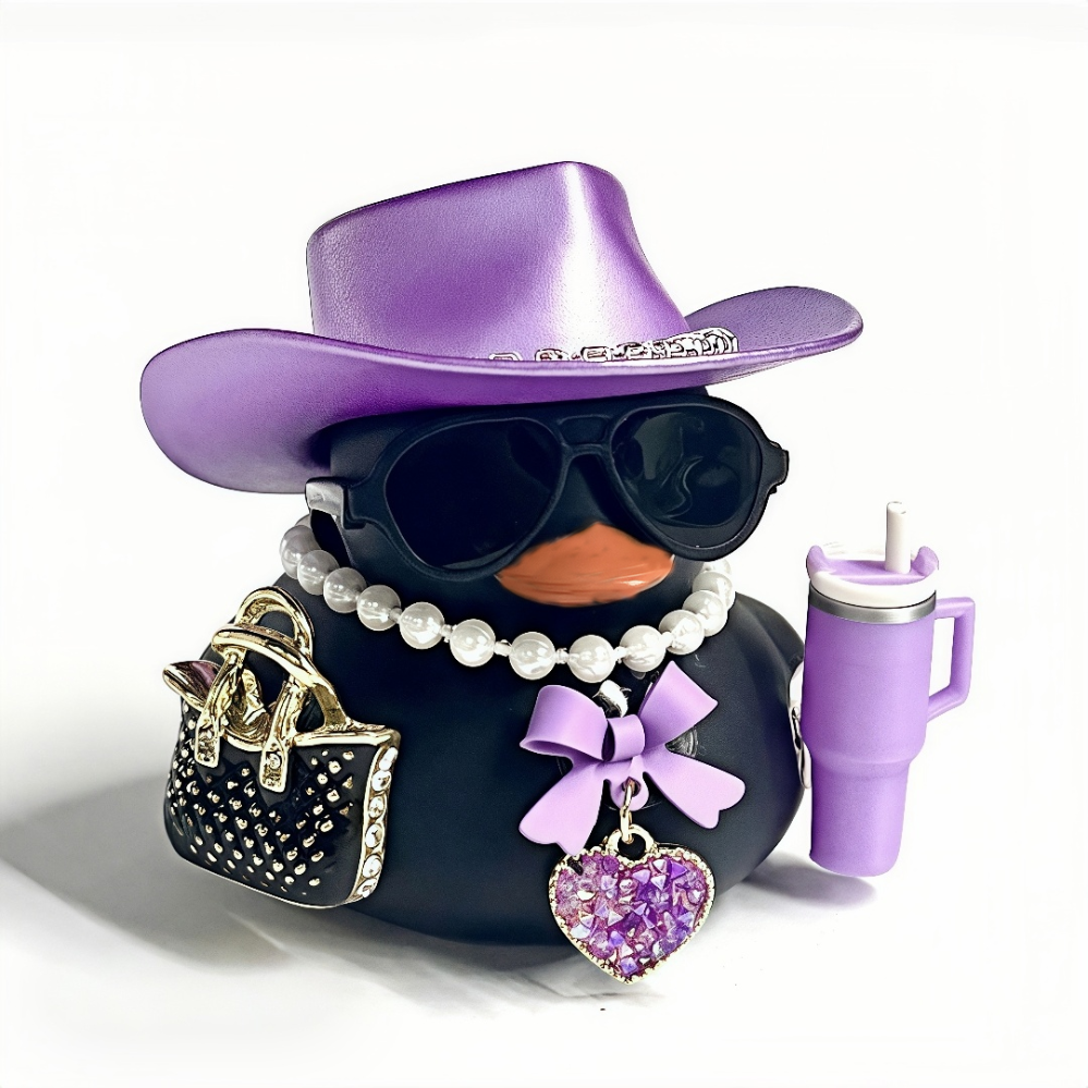 Nova is Cheezy Rabbit’s mystical rider — a bold black duck in a shimmering purple hat and crystal heart pendant, who carries magic in her eyes and energy in her stride. She drinks cold brew from her enchanted tumbler, walks with purpose, and never follows the crowd. Her confidence isn’t loud. It’s electric.